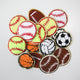 Celebrate your love for the game with this dynamic collection of sports-themed patches! Featuring vibrant designs of baseballs, softballs, footballs, soccer balls, basketballs, and volleyballs, each patch is beautifully detailed with bold stitching and a shimmering gold trim.